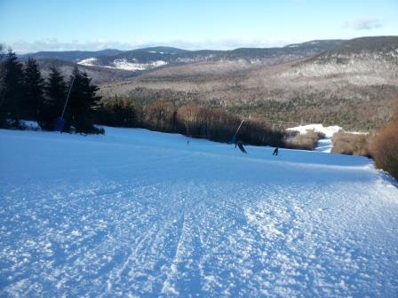 Dans les 26 pistes ouvertes on retrouvait une neige damée, granuleuse viellie et même transformée par le soleil tout au long de la journée. Le croirez-vous, elle se rapproche de très près d'une condition printanière. Incroyable direz-vous pour un 26 décembre.